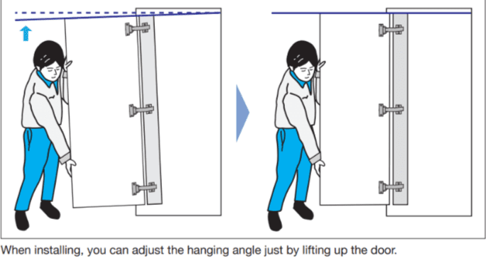 During installation, you can make door alignment adjustments to the hanging angle simply by lifting up the door: