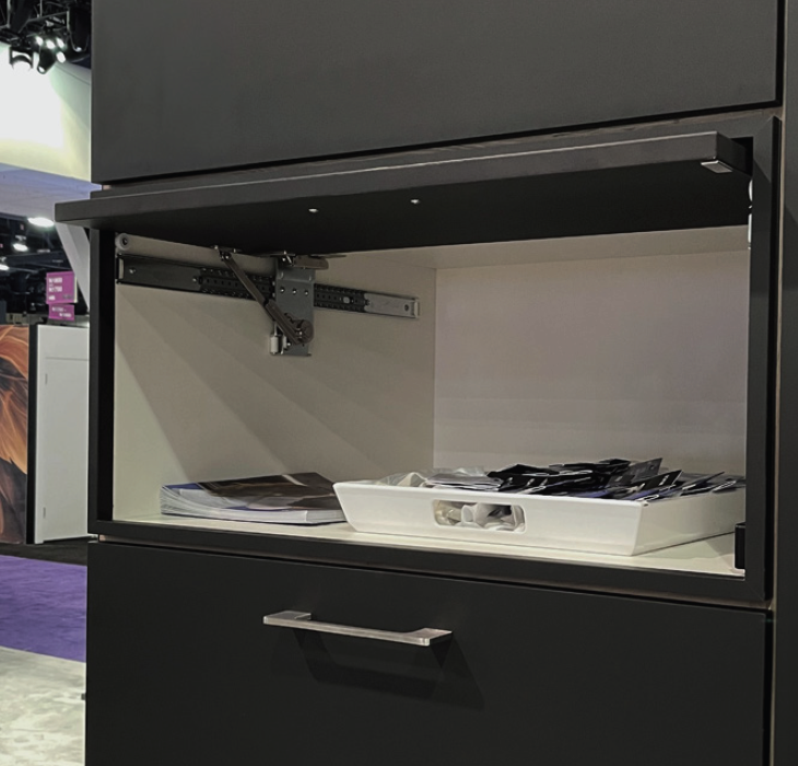 The IF-360 system enables doors to retract into the cabinet, enhancing accessibility and optimizing storage space. This system comes equipped with a sophisticated soft-close feature, allowing the door to gently shut without slamming. The soft-close feature’s speed is adjustable allowing users to tailor their experience.