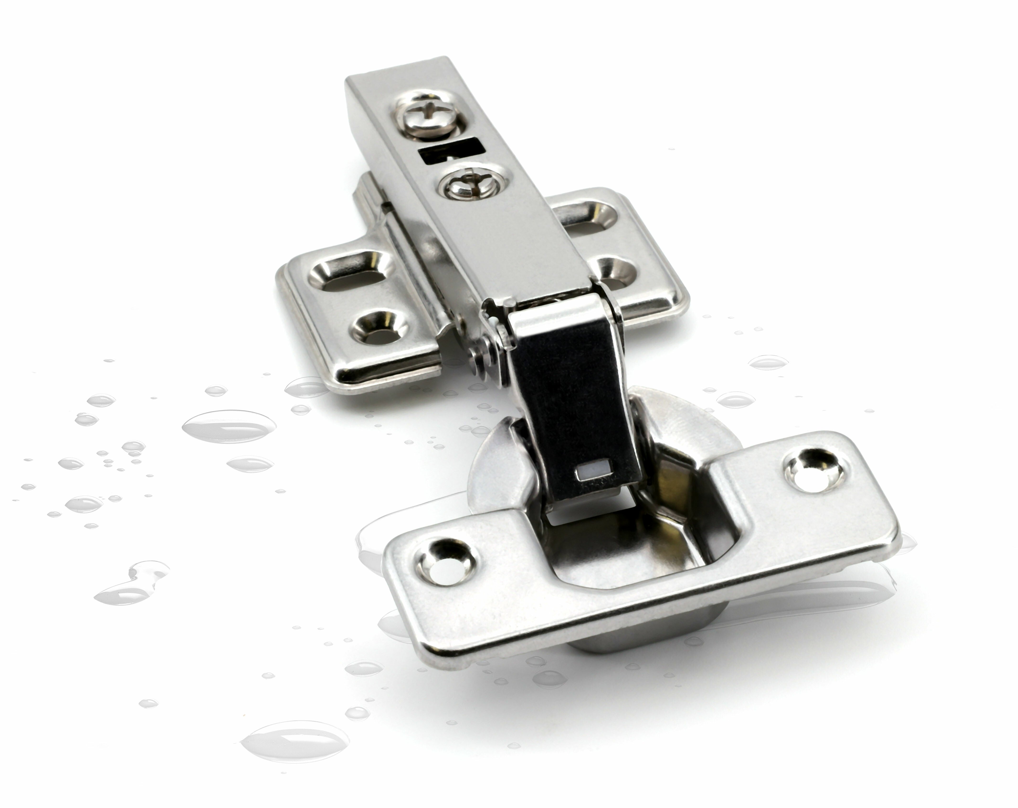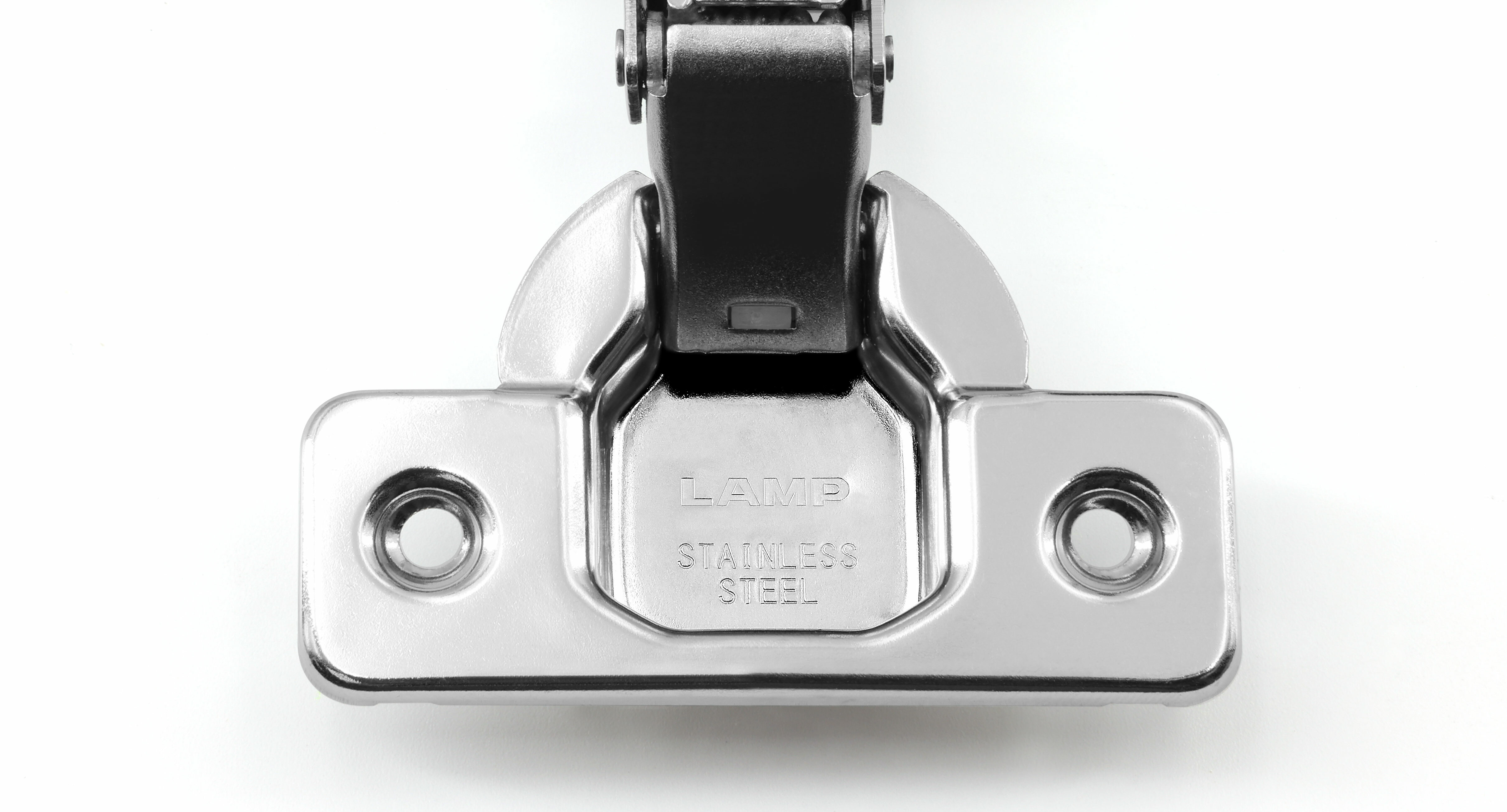 Like many of our hinges this stainless steel, soft-close hinge can be used in combination with our self-close hinge, also available in stainless steel to perfectly calibrate the closing speed of your cabinet door.