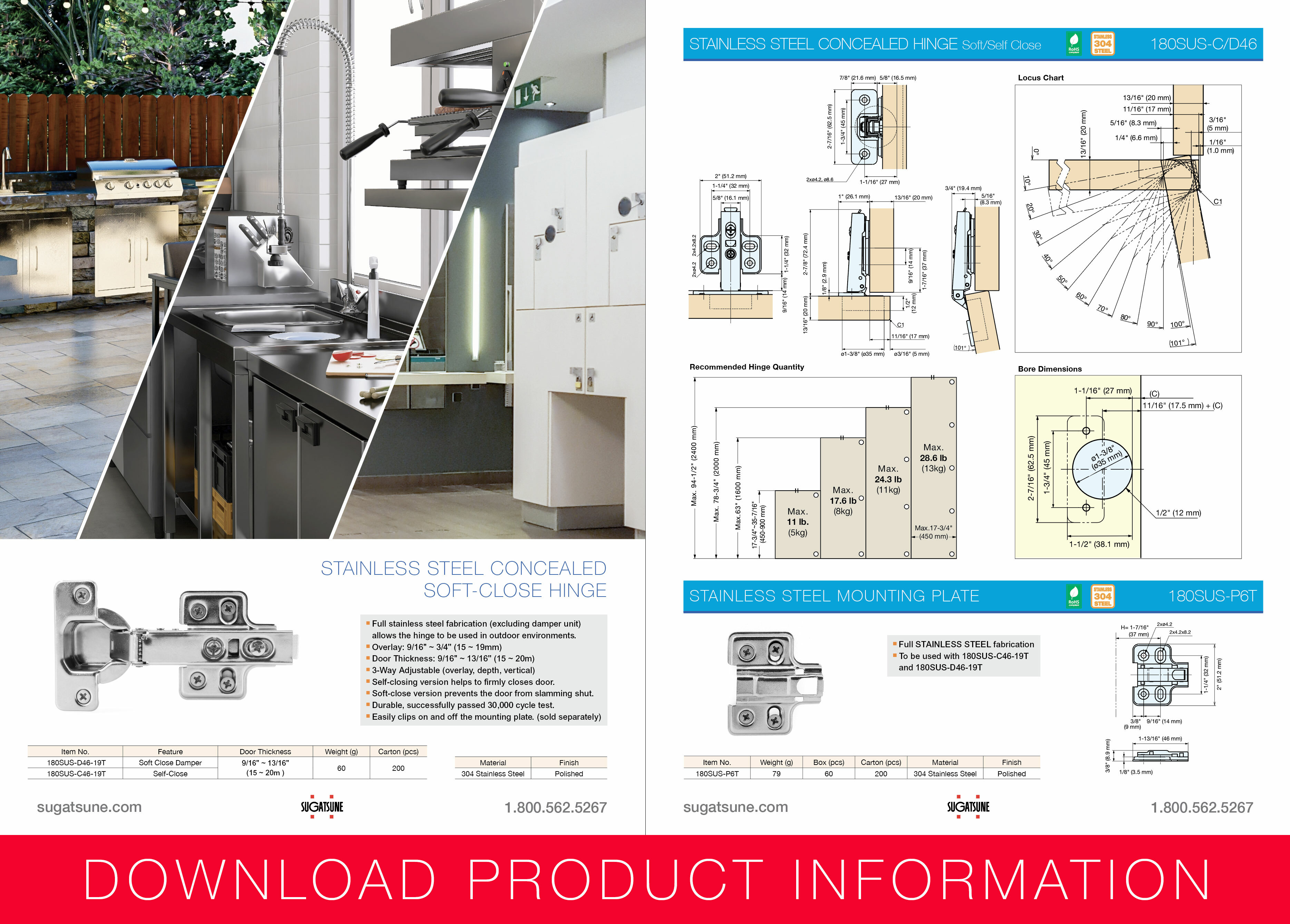 Introducing the latest innovation in durable hardware: Sugatsune’s Stainless Steel Soft-Close Hinge. Crafted for durability and elegance, this hinge seamlessly combines the robustness of 304 grade stainless steel with the convenience of a soft-closing mechanism. Ideal for cabinets, outdoor and commercial kitchens, locker rooms, and more, it ensures gentle and silent closure every time, reducing noise and wear while adding a touch of modern sophistication to any space. Whether you're renovating your kitchen, designing a new outdoor space, or enhancing your exterior design, our stainless steel soft-close hinge promises reliability and effortless functionality, making it an indispensable choice for discerning homeowners and designers alike.