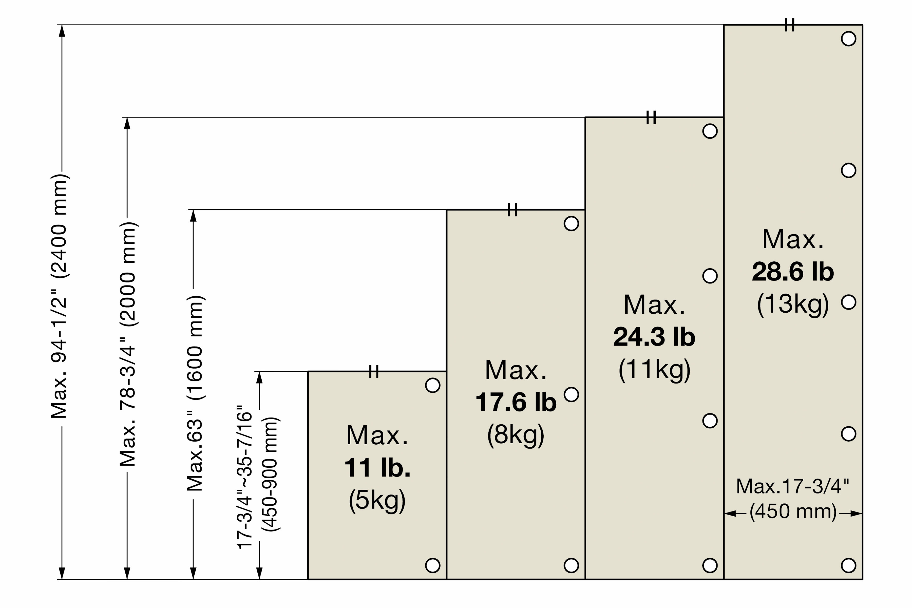 • Overlay: 9/16" ~ 3/4" (15 ~ 19mm)